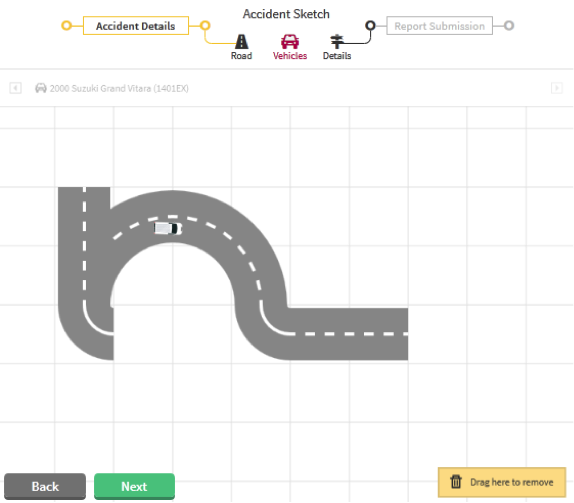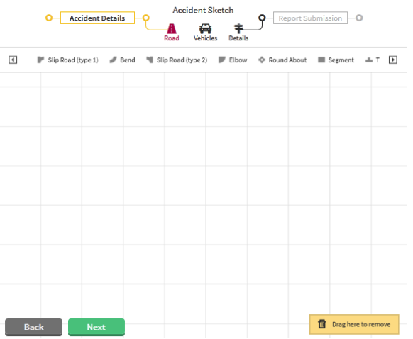 - Drag the appropriate icons such as roads and automobiles onto the sketch pad to re-create the accident scene